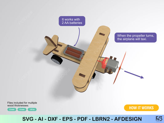 Laser Cut Files: Propeller Airplane STEM Toy | Engine‑Ready, Taxis on Smooth Surfaces