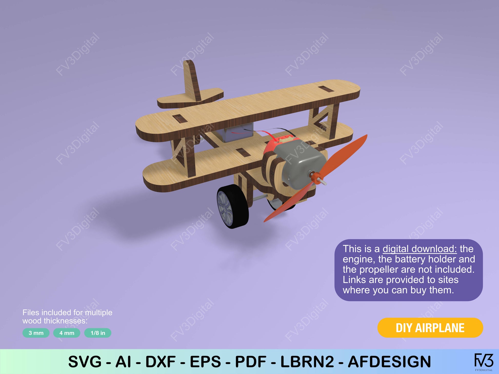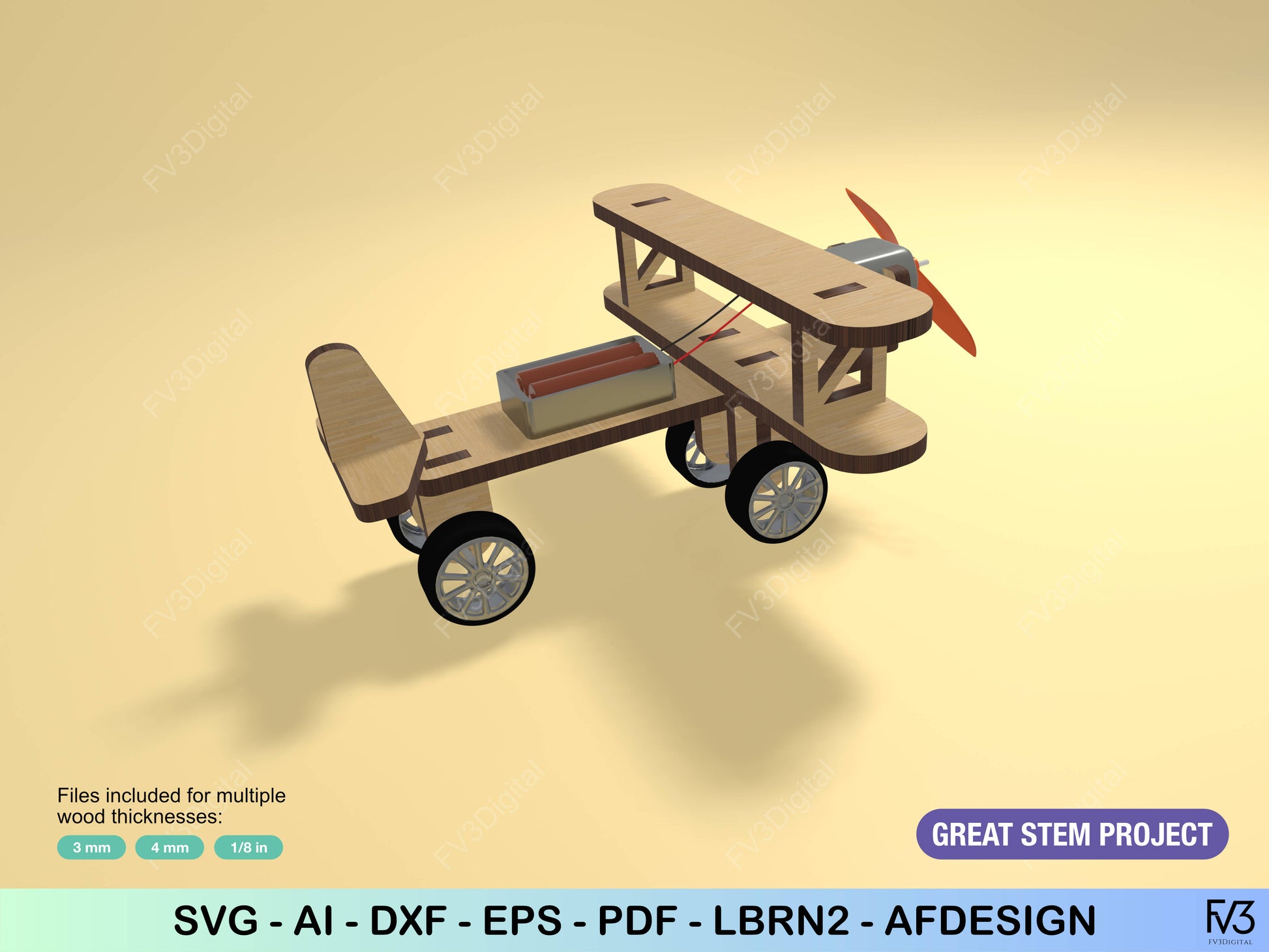 Laser Cut Files: Propeller Airplane STEM Toy | Engine‑Ready, Taxis on Smooth Surfaces