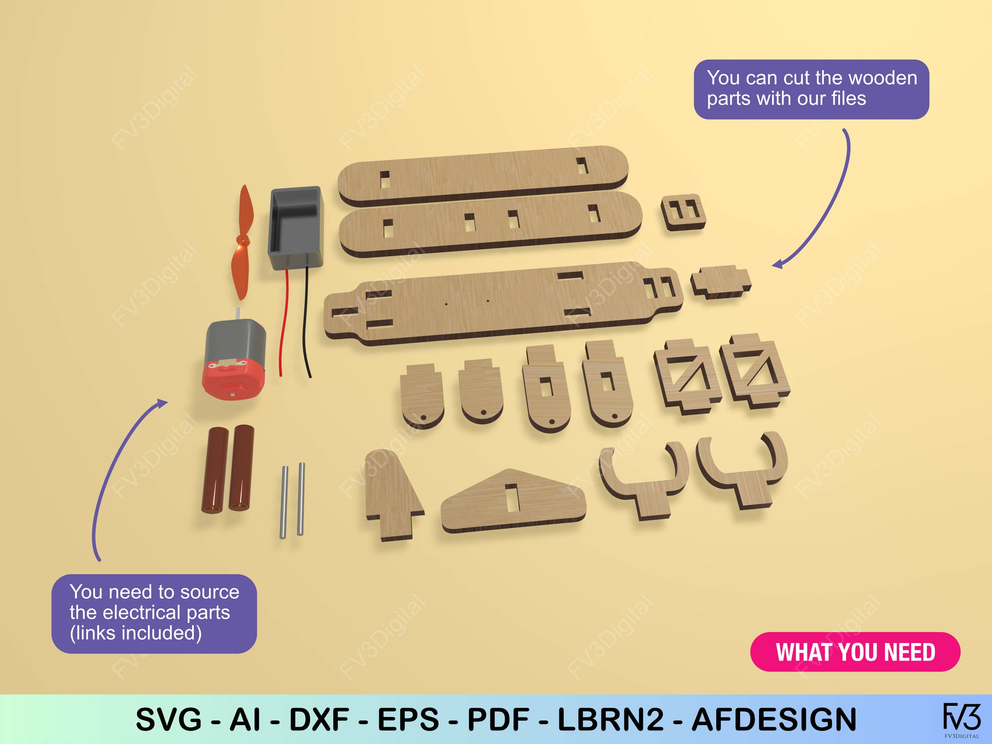 - Kit Includes: Laser-cut wooden part files only